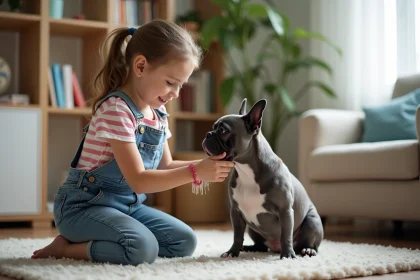 Comment les enfants peuvent-ils participer aux soins du bouledogue bleu français ?