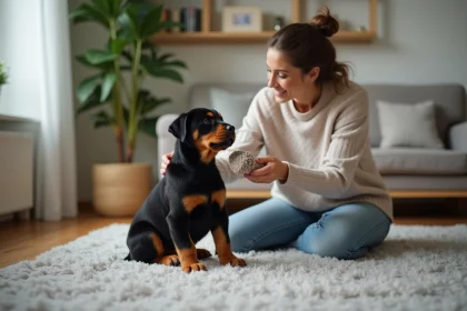 Un chiot de grande race tel que le Rottweiler développe ses habitudes…