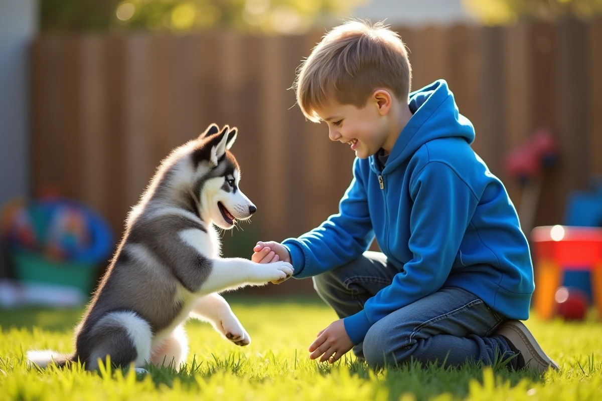 Pour les plus jeunes, l’allure attachante du chiot peut masquer son énergie débordante. Le husky, joueur invétéré, teste sans cesse les limites, mordille pendant les jeux ou réclame l’attention à grands renforts de cabrioles. Les parents doivent alors poser le cadre : fixer des balises claires, offrir des repères rassurants, permettre à chacun d’établir une relation équilibrée avec le chien, fondée sur le respect partagé.